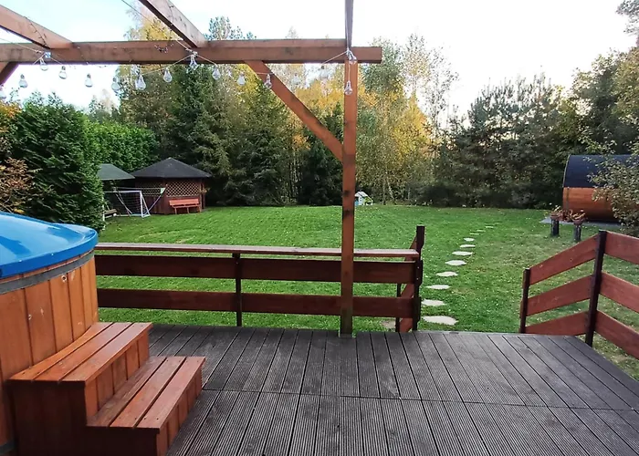 Die Villa Borowy Las Wita Was bietet einen Swimmingpool sowie eine Sauna, damit Sie sich nach einem anstrengenden Tag entspannen können.